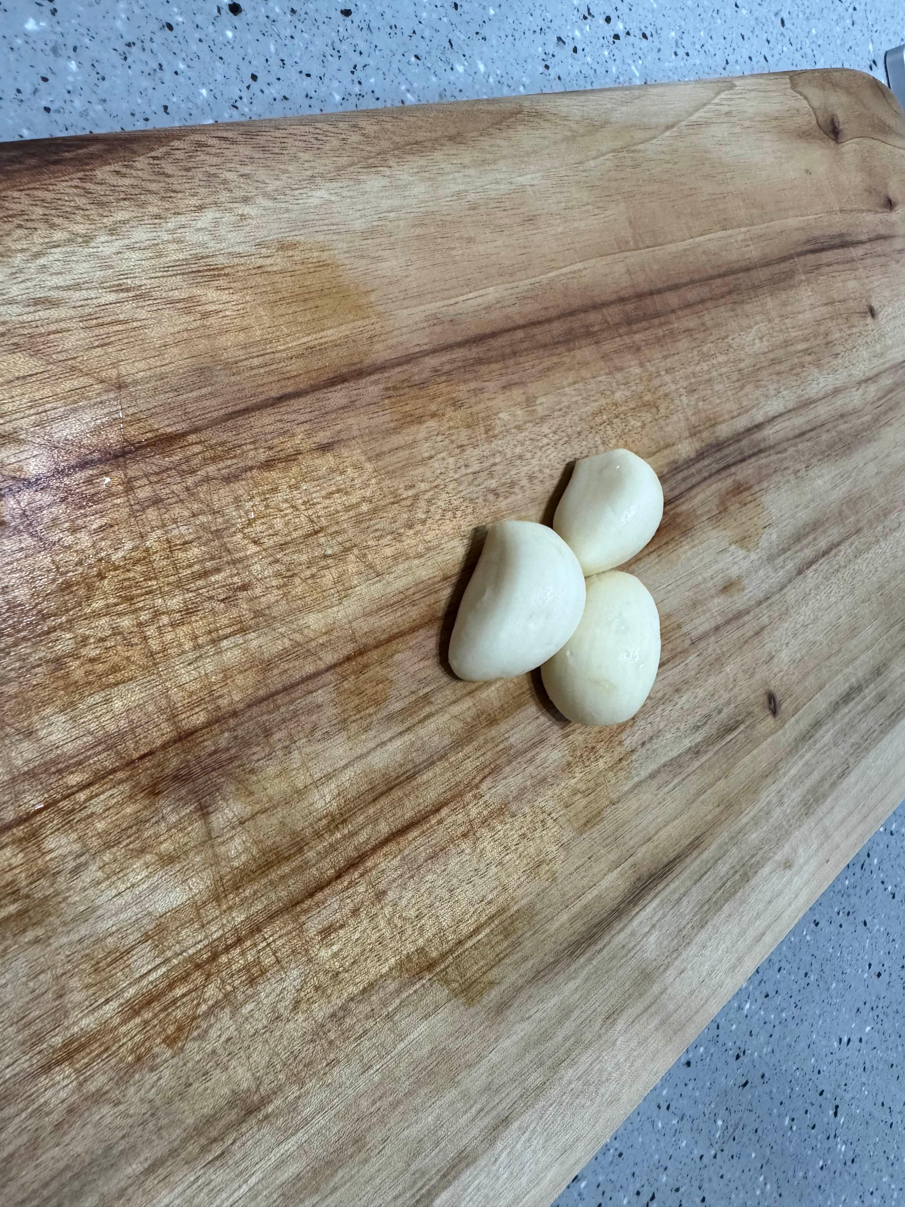 먼저 새우를 버터 갈릭 쉬림프로 만들기 위한 첫 번째 재료로 마늘을 준비해요.
