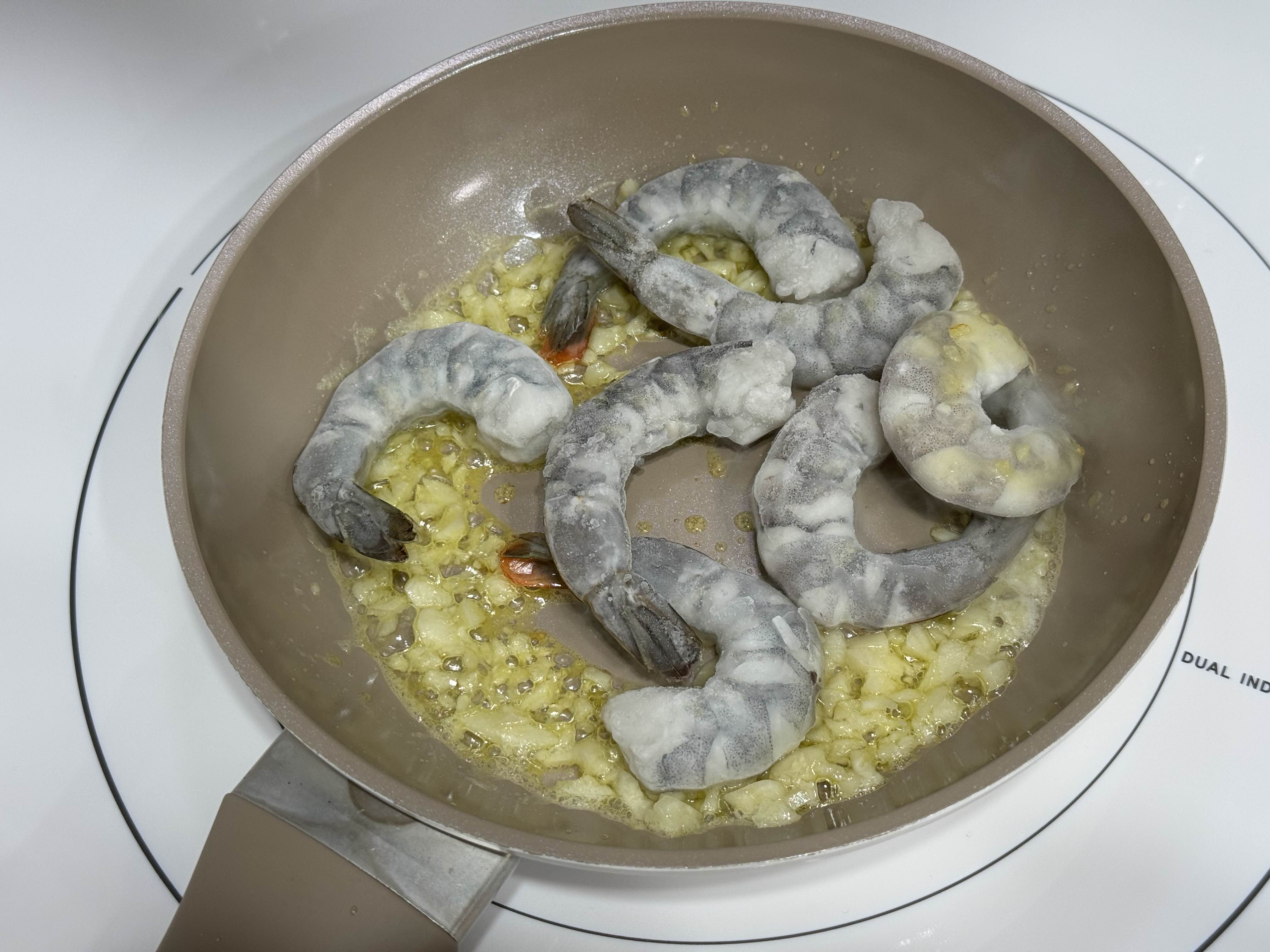 키토제닉 다이어트 중이에요. 탄수화물을 제한하는 만큼 먹을게 많이 줄어드는데, 이번에 새우를 사서 뭘 해먹을까 하다가 도우를 뺀 새우 피자를 만들기로 했어요.